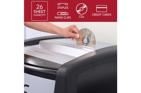 - Easily shred CDs, credit cards, paper clips, staples and junk mail
