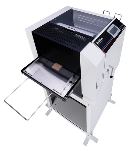 Join the revolution with the all new Revo Flex next generation fully automatic laminator. The Revo Flex 4 side trimming system allows for true flush cuts or encapsulating a sheet with lamination. The position of the cuts are fully adjustable to create perfect flush cuts or custom size encapsulation borders. No need for additional processing to trim all 4 sides of a sheet. Feeding, laminating, cutting and trimming are now fully automated with the press of the start button.